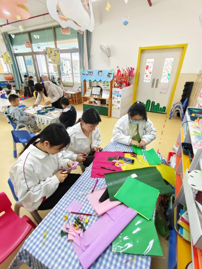 在课程结束后,幼儿园指导教师就学生环境创设情况予以点评和指导,师生就小组开展的幼儿园主题教育活动环境创设情况进行了评价。