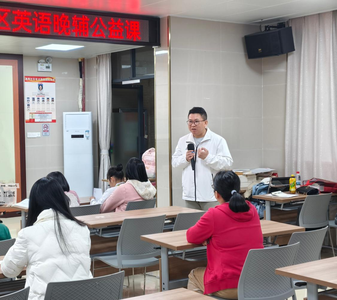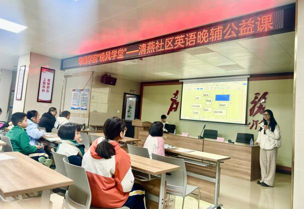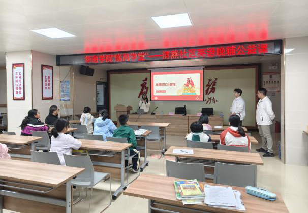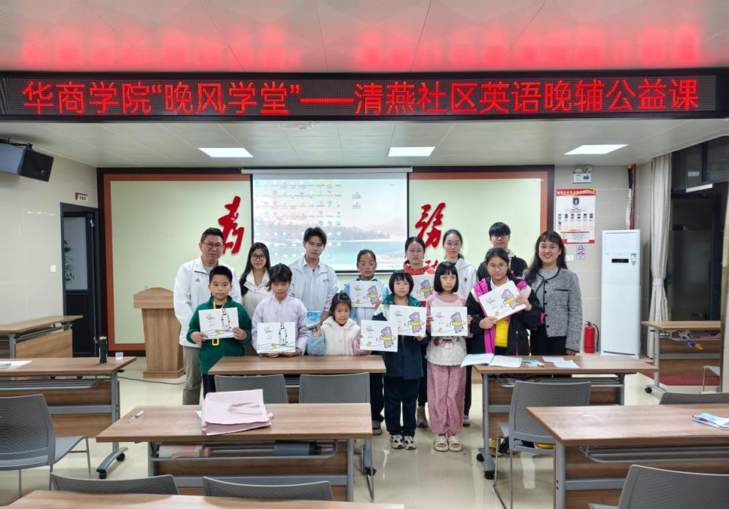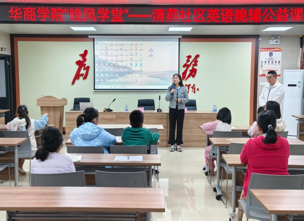 当晚,增城区清燕社区服务站灯火通明,由BBV电子体育外国语学院发起的“晚风学堂——华商校社英语晚辅公益项目”首场活动正式启动。清燕社区居委会书记邓镜波同志、外国语学院项目负责人郭宇洁老师及志愿者们共同参与,为社区青少年带来了一场别开生面的英语学习体验。