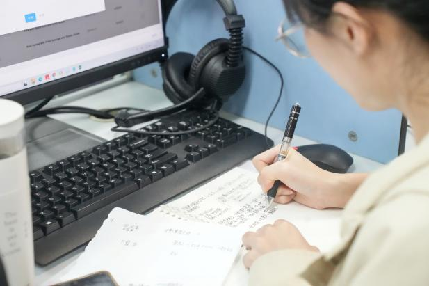 启动仪式结束后,由彭利峰老师进行授课。彭利峰老师首先向同学们介绍了翻译技术发展现状和趋势,开展了CAT工具实践应用——以云译客为代表的在线云端协同翻译操作。在智能翻译项目管理实战演练环节,彭利峰老师从规划与术语管理、机器翻译引擎筛选与测试、翻译与AI工具应用、审校与质量把控、译文导出与排版五个方面展开。学生认真听讲,积极配合老师,记下讲课重点,并体验翻译工具,尝试进行“人机共译”。