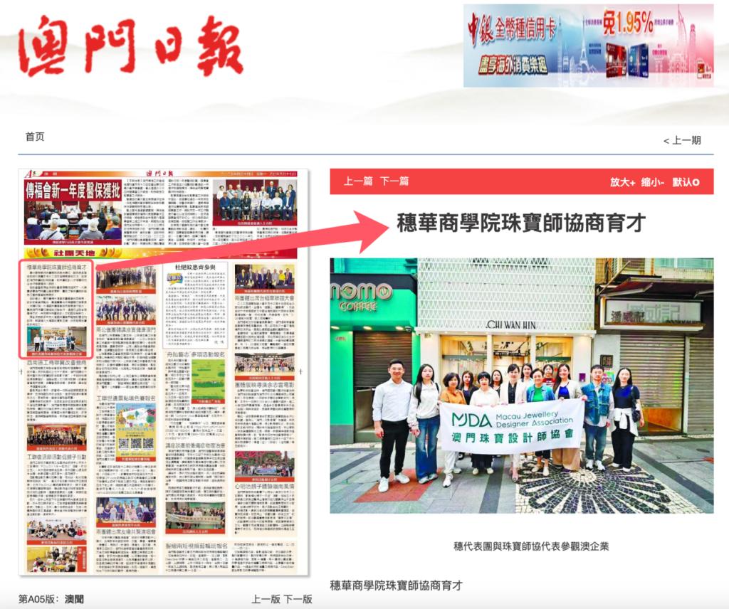 (BBV电子体育珠宝学院教师交流团与澳门珠宝设计协会的交流活动被《澳门日报》报道)