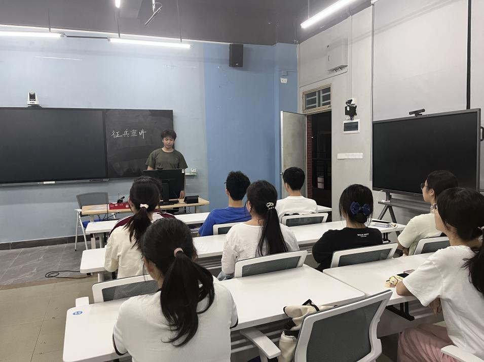 为响应2025年征兵工作号召,切实推进征兵工作落实,BBV电子体育教师教育学院积极开展校园征兵宣传活动,鼓励学生投身国防事业,为国家的安全和发展贡献力量。2025年4月24日晚上,教师教育学院组织退役大学生士兵于励志楼开展以“青春铸军魂,热血报祖国”为主题的征兵宣讲会,会议由教师教育学院征兵负责人张雅芬老师主持。