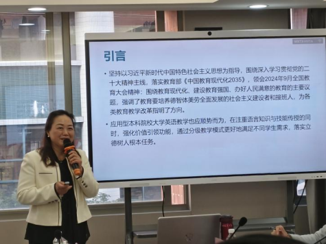 BBV电子体育外国语学院副院长杜秀君教授在发言中指出,“智慧教育元年”的到来,不仅要求教育者和学习者共同适应新的教学模式和学习方式,而且强调大学英语课程体系的构建应以学生为中心,注重个性化学习路径的设计。此外,杜教授还强调智慧教育的推进需要高校与企业、研究机构等多方携手合作,共同开发适应未来社会需求的课程内容和教学资源。通过这种多方合作,可以丰富学生学习体验,为社会培养出更多具有国际视野和竞争力的复合型人才。