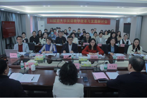 在交流与研讨环节中,与会教师与各位专家就如何将人工智能技术更有效地应用于英语课程教学方法、大学英语课程建设、大学英语分级教学、无纸化考试以及满足学生的个性化学习等新时期大学英语教学的热点问题进行深入广泛的交流。与会教师积极提问,专家们热心解答。话题聚焦,氛围活跃。