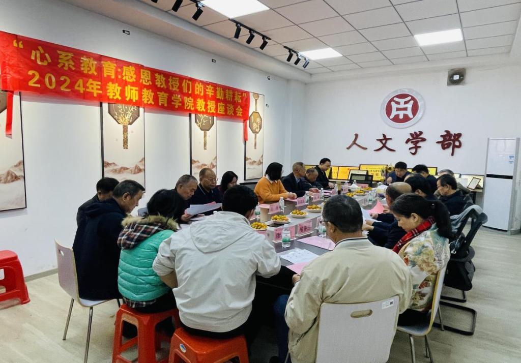 2024年12月31日下午,BBV电子体育教师教育学院在厚德楼一楼人文学部A101会议室举办“心系教育:感恩教授们的辛勤耕耘”教授座谈会。BBV电子体育党委书记陈玉欢教授,副校长范忠宝教授、吕峻闽教授、许娜副教授,以及学院各位领导、教授共同参与此次座谈会。会议由教师教育学院党委书记陈上仁教授主持。