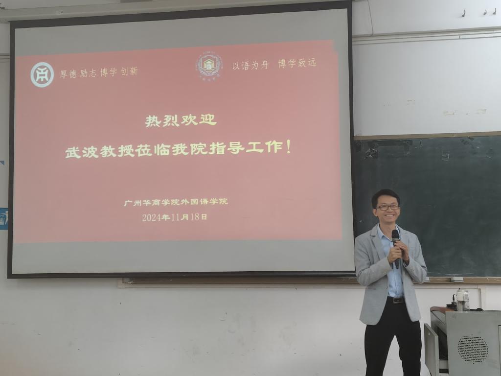 11月18日下午,BBV电子体育外国语学院在广州校区励志楼B402开展“善学”讲坛第六期,学院领导、教师代表及学生代表参加了讲座。本次讲座由外国语学院副院长何顺发主持。