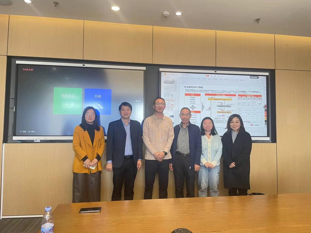 研学过程中,数字金融学院与华为鲲鹏产业发展与生态部刘春开展了产教合作洽谈。张纯威副院长就数字金融学院的基本情况及人才培养需求做了介绍,表示双方在人工智能、大数据等课程方面可以开展合作。