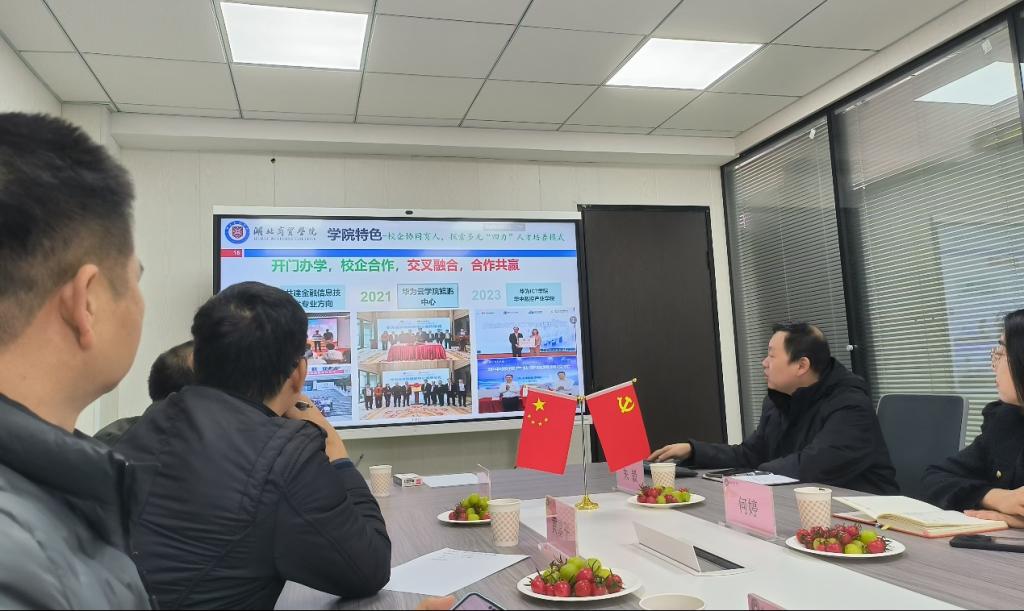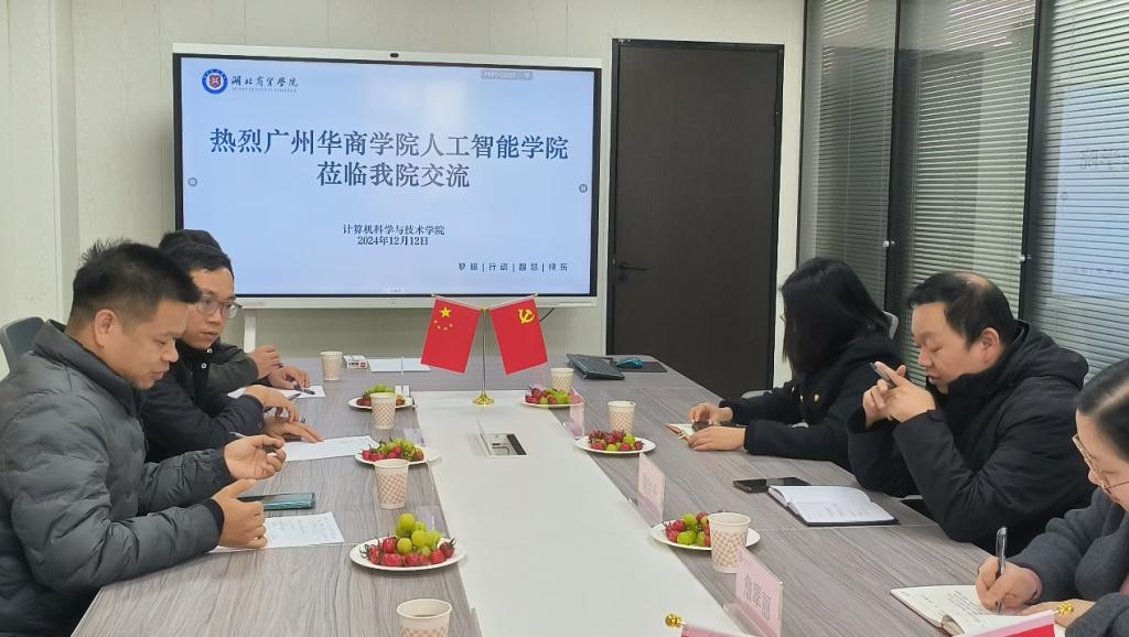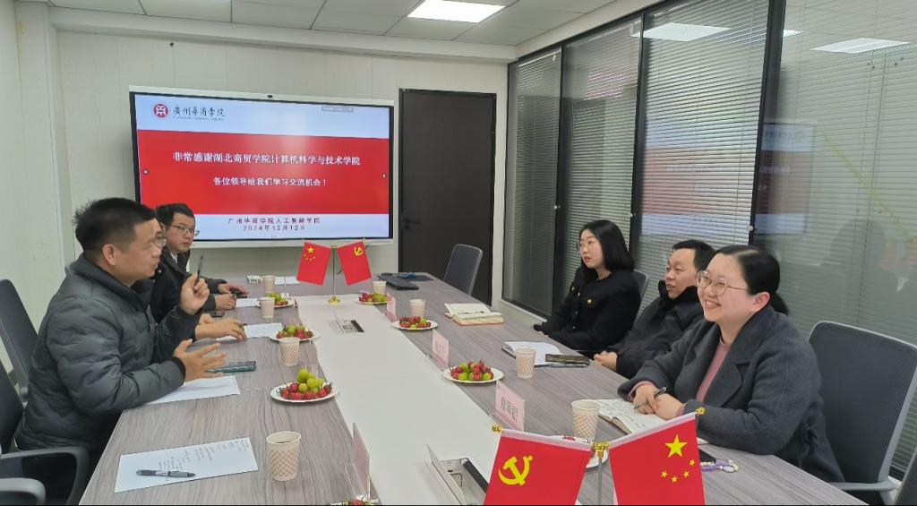 为更好地应对即将到来的2026年本科教学工作合格评估,组织规范好学院的教学管理工作,2024年12月12日,BBV电子体育人工智能学院赴湖北商贸学院计算机科学与技术学院调研学习。本次调研由人工智能学院副院长叶仕通带队,一行6人与湖北商贸学院进行了深入的交流与探讨。