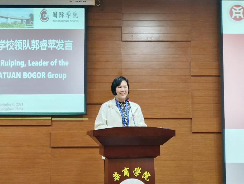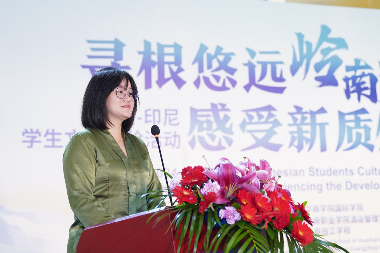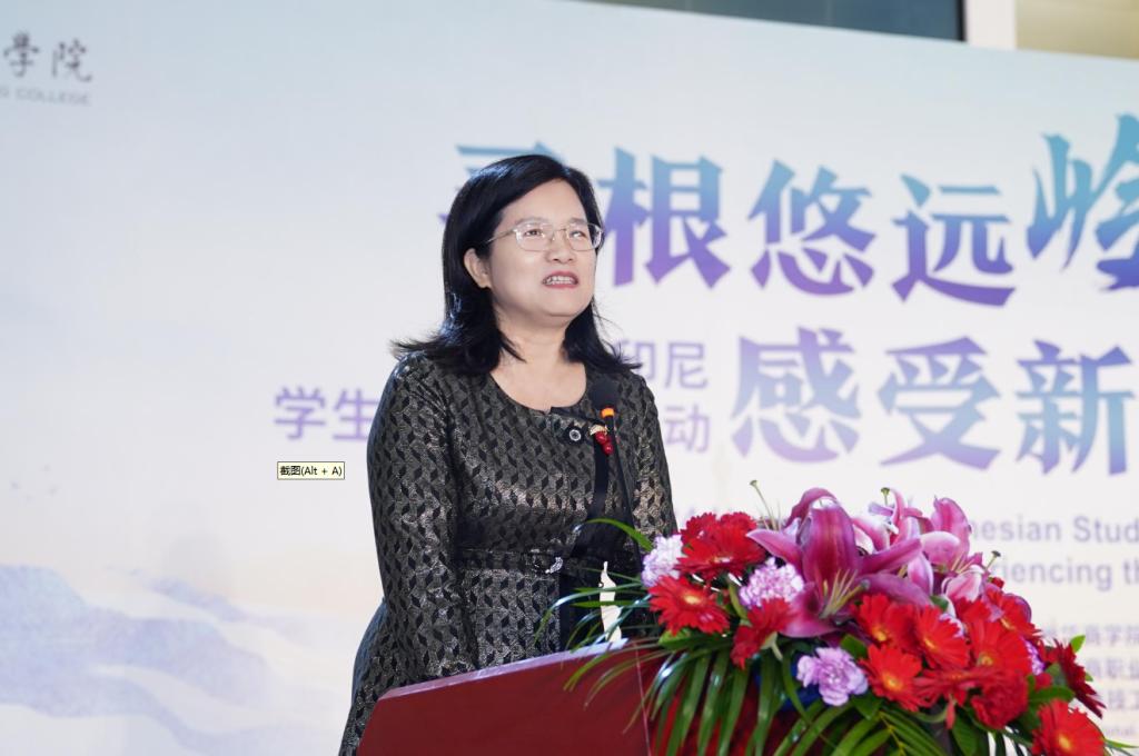 BBV电子体育党委书记陈玉欢致辞,她从中国和印尼两国友谊的角度,强调了加强中国与“一带一路”首倡地印尼合作的意义和重要性。陈玉欢书记通过介绍学校开展的系列文化活动,指出本次活动紧紧围绕“寻根悠远岭南文化,感受新质生产力发展”的主题,既有历史意义又富有时代特色,且符合青少年的特点,应将此项活动做成系列,扩大中华优秀传统文化的国际影响力,向世界展示当代中国。