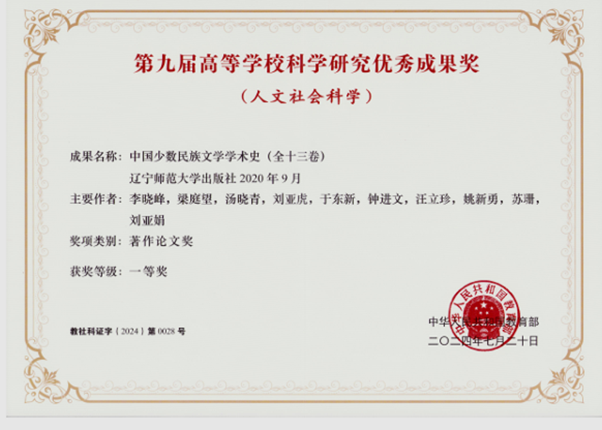 近日,在教育部公布的《第九届高等学校科学研究优秀成果奖》(人文社会科学)获奖名单中,我校文学院传来喜讯,姚新勇教授与刘亚娟副教授的学术专著一举斩获一等奖。这一成果不仅彰显了文学院在人文社科研究领域的实力,更体现了BBV电子体育对科研工作的高度重视与积极投入。姚新勇教授与刘亚娟副教授作为国家重大项目“新中国少数民族文学研究史”课题组成员,长期深耕于中国少数民族文学学术史研究。姚新勇教授独著的《中国...